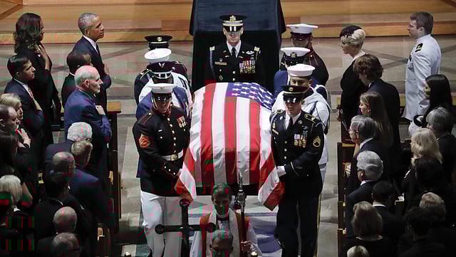 WASHINGTON: John McCain's daughter opened his memorial service by posing her father's legacy as a direct challenge to President Donald Trump, setting a tone that echoed the senator's own fighting spirit as former Presidents Barack Obama and George W Bush eulogized him Saturday at the Washington National Cathedral.