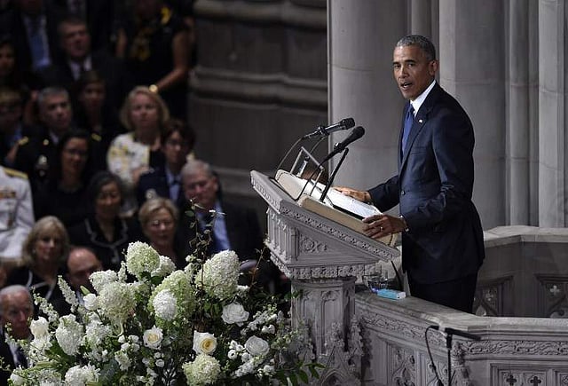 Obama made no mention of his successor by name but told the audience at the Oslo Business Forum in the Norwegian Capital that he feared "rising protectionism and authoritarianism" in the US since he left office.