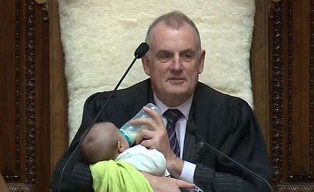 WELLINGTON: The Speaker of New Zealand's parliament, Trevor Mallard, cradled a lawmaker's baby while he presided over a debate in the House of Representatives.