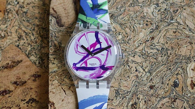 The Pigcasso limited edition may not have the allure of the recent Damien Hirst collaboration or the vintage cool of any historic Keith Haring stuff, but you can't deny how much fun it is. Like many Swatch watches, this edition is best teamed with subdued sartorial combinations to avoiding color clash. The watch itself has a white plastic strap and dial adorned with Pigcasso's work and a transparent case. The colors on the strap are green and blue while the dial carries shades of pink and purple. The strokes on the dial do create somewhat of an issue around legibility, but I don't think that's a primary concern with this watch.