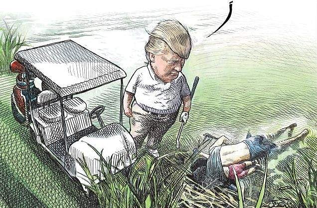 Trump was seen near a golf cart with a stick in his hand, and asking the dead father and child “Do you mind if I play through?” Michael had shared the same on his Twitter handle on June 26 along with the hashtag "#TrumpConcentrationCamps."