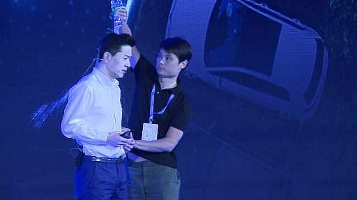 Li was speaking about Baidu's autonomous car development at an event on Artificial Intelligence on Wednesday when the man stormed onto the stage and emptied a water bottle over his head.