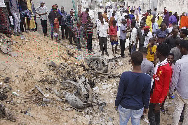 MOGADISHU: At least 12 people were killed and more than 30 injured in a suicide bomb and gun attack claimed by Al-Shabaab militants on a popular hotel in southern Somalia, a security official said Saturday.
