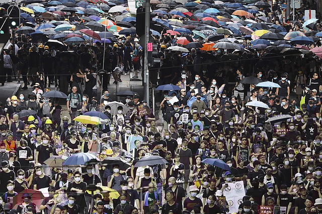 Two other groups headed in other directions, one toward the west, where mainland China's Liaison Office is. Last weekend, protesters egged the office and splattered black ink on China's national emblem, eliciting an angry reaction from the Chinese government.