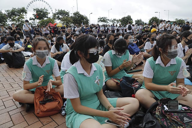 HONG KONG: Clad in gas masks along with their formal white school uniforms, tens of thousands of students in Hong Kong boycotted the first day of classes Monday as part of a citywide strike following a violent weekend of demonstrations.