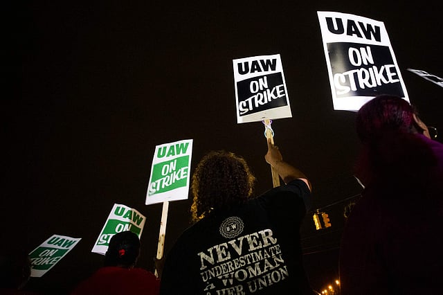 Striking GM employees were joined on the picket lines by workers from Ford and Fiat Chrysler, who are working under contract extensions.