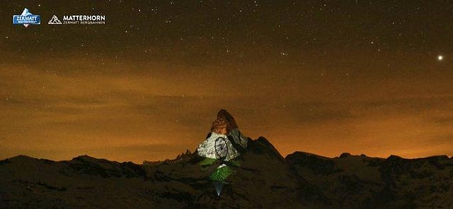 "Indian Tricolor of more than 1000 meters in size projected on Matterhorn Mountain, Zermatt, Switzerland to express Solidarity to all Indians in the fight against COVID 19.A big Thank You to @zermatt_tourism for the gesture," the Indian embassy in Switzerland tweeted.