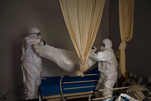 MADRID: As the two mortuary workers pushed a stretcher with a bagged corpse out of the room, the elderly man in the adjacent bed briefly awakened from his dementia. “Is he dead?” he muttered, extending his arm, trying to touch his roommate for the last time.