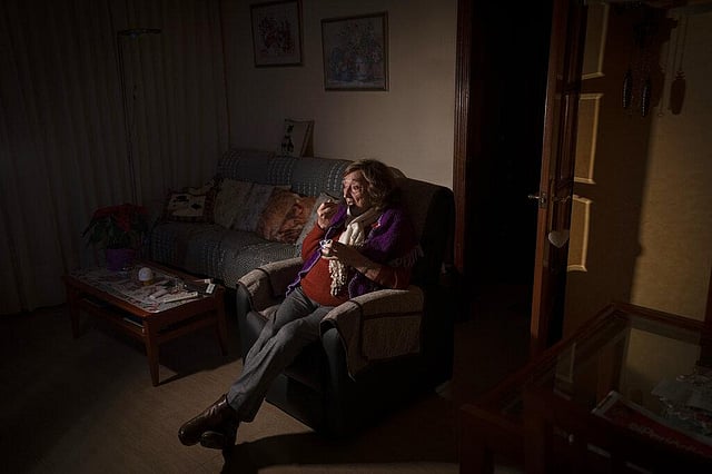 José Ribes, 84, is used to being on his own since his wife left him. He kept the Spanish Christmas Eve tradition of eating prawns. He shelled and ate them propped up in the bed where he has all his meals and smokes cigarettes that give his home a permanent smell of stale tobacco.