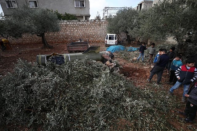 An AFP correspondent in Sarmeen saw the remains of a missile several metres long fuming in a nearby olive grove. In the latest round of violence in Syria's nearly nine-year-old war, regime forces have upped their deadly bombardment of the northwestern opposition bastion of Idlib in recent weeks.