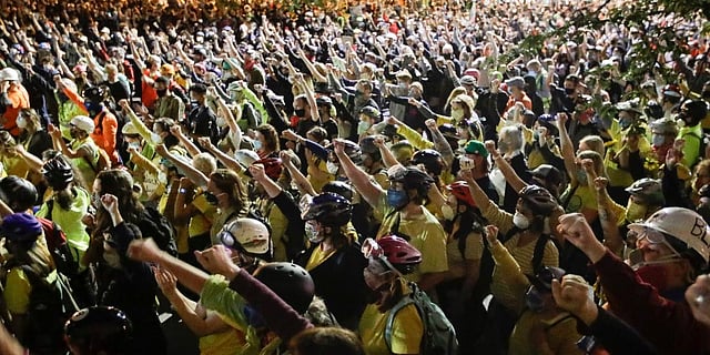 Thousands of people gathered in Portland streets hours after a US judge denied Oregon's request to restrict federal agents' actions when they arrest people during protests that have roiled the city and pitted local officials against the Trump administration.