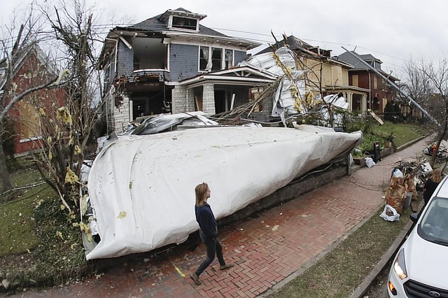 Among the victims were two people in Nashville killed after being struck by debris, police said.