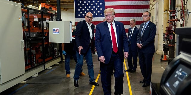 Trump's audience at Honeywell sat masked in compliance with US government recommendations and their own company rule, which was clearly displayed on a sign in the facility reading: "Please wear your mask at all times."