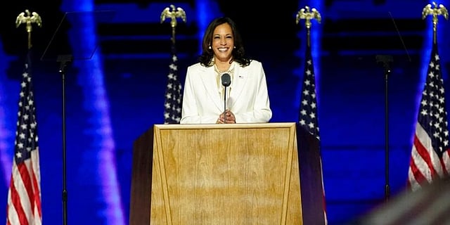 "Tonight I reflect on their struggle, their determination and the strength of their vision to see what can be unburdened by what has been," Harris said, wearing a white suit in tribute to women's suffrage. President-elect Joe Biden had the character and audacity "to break one of the most substantial barriers that exists in our country, and select a woman and his vice president." she added.