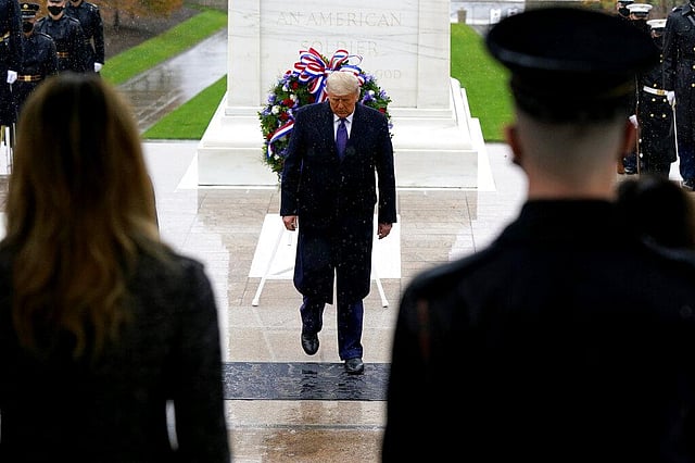 Trump, who honored veterans in a ceremony that was held during a steady rain, has spent the last several days holed up at the White House tweeting angry, baseless claims of voter fraud after his election loss.