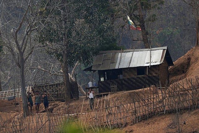 Video shot from the Thai side of the border showed flames rising from the government position on the banks of the Salween River, amid the sound of heavy gunfire. The river marks the border with Thailand.