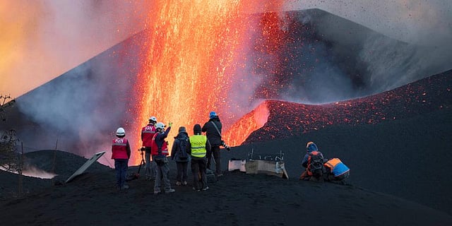LAS MANCHAS: They come with eagle-eyed drones and high-precision instruments. Aided by satellites, they analyze gas emissions and the flows of molten rock. On the ground, they collect everything from the tiniest particles to “lava bombs” the size of watermelons that one of nature's most powerful forces hurl as incandescent projectiles.