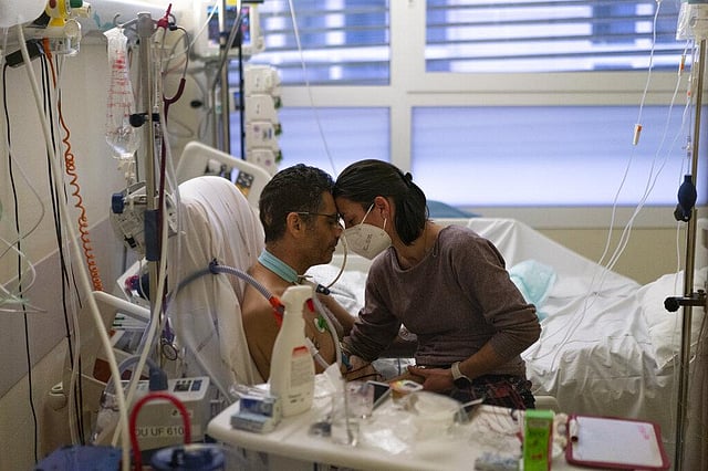 The hospital allows families to visit gravely ill loved ones in the ICU, as long as they're careful.