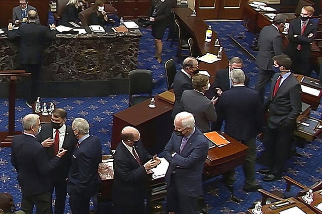 While most Democrat were expected to vote to convict the former president, acquittal appeared likely with a two-thirds majority required for conviction and the chamber split 50-50 between the parties.