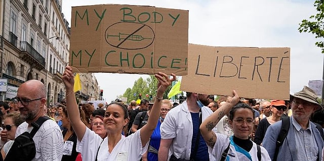 They denounced the government's decision to make vaccines compulsory for all health care workers, and to require a "health pass" proving people are fully vaccinated, have recently tested negative or recovered from the virus in order to access restaurants and other public venues. President Emmanuel Macron's government is presenting a draft law Monday to enshrine the measures.