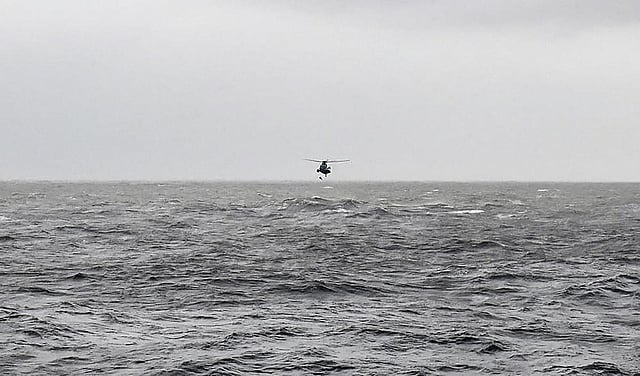 Eight cargo containers fell into the sea during the operations, officials said.