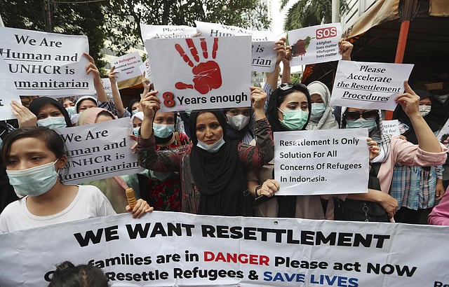 JAKARTA: Hundreds of Afghan refugees and asylum seekers living in Indonesia rallied in front of the U.N. refugee agency office in Jakarta on Monday, November 15, 2021, to urge it to speed up their resettlement.