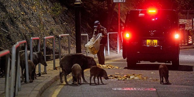 Last week, a wild boar knocked down an auxiliary police officer and bit his leg before plunging to its death from a residential car park. Hong Kong leader Carrie Lam has since warned of stiffer penalties for those caught feeding the boars.