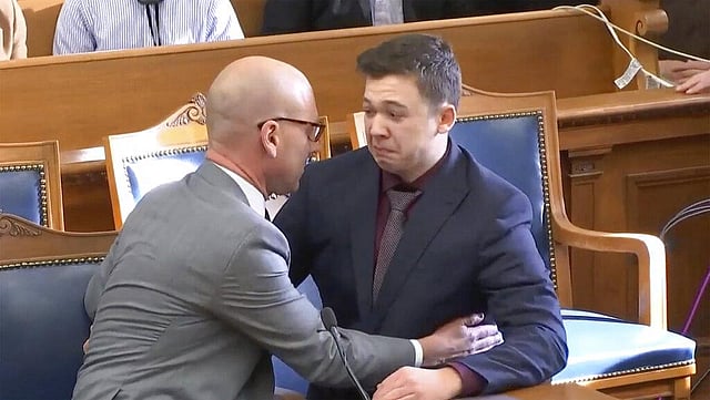 Rittenhouse's mother, sitting several feet away from him on a courtroom bench, gasped in delight and began crying as the clerk read out the string of five not-guilty verdicts, hugging others around her.