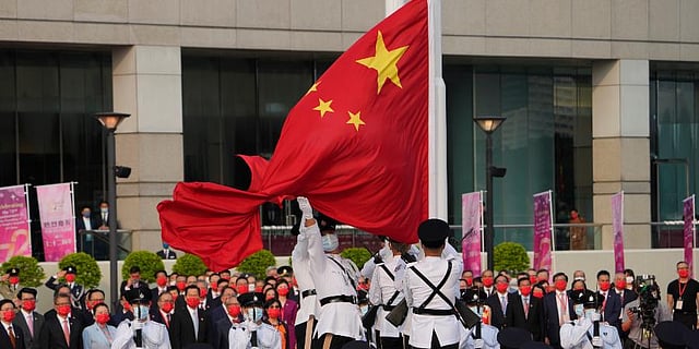 At the National Day celebration, Hong Kong Chief Executive Carrie Lam presided over a flag-raising ceremony attended by Hong Kong and Chinese officials who sang China's national anthem while helicopters displaying the Chinese flag passed overhead.