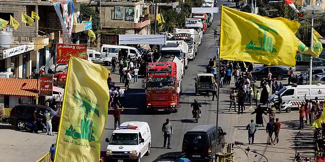 The tanker trucks crossed from Syria’s central province of Homs into Lebanon’s Bekaa Valley and were welcomed by residents who gathered on the sides of the main road. Hezbollah’s yellow flags and banners praising the Iran-backed group and Syria’s President Bashar Assad decorated the streets.
