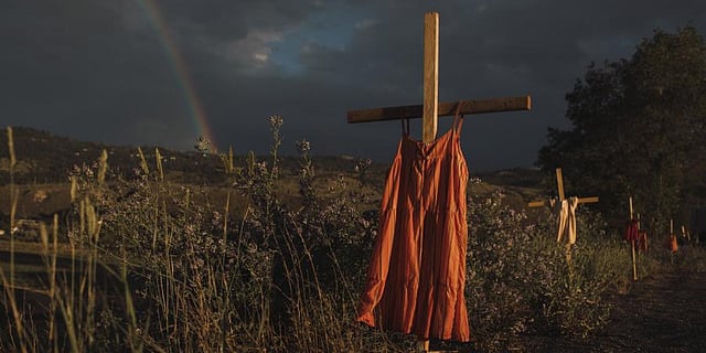 THE HAGUE: A haunting image of red dresses hung on crosses along a roadside, with a rainbow in the background, commemorating children who died at a residential school created to assimilate Indigenous children in Canada won the prestigious World Press Photo award Thursday.