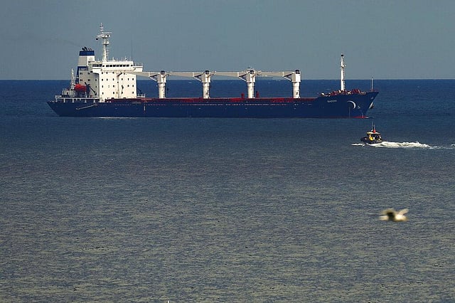The Sierra Leone-flagged Razoni was cleared for passage through the Bosphorus Strait by a team that included Russian and Ukrainian inspectors on Wednesday.