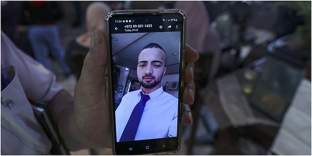 A relative shows his mobile phone displaying a picture of Palestinian Mohammed al-Shaham, 21, killed during an Israeli home raid. (Photo | AFP)