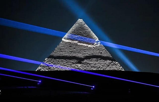 The Pyramid of Khafre (Chephren) is illuminated during the Christian Dior fashion show at the Giza Pyramids Necropolis on December 3, 2022 | AFP