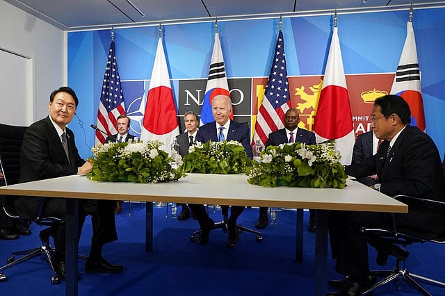 South Korean President Yoon Suk Yeol said the importance of trilateral cooperation has grown in the face of North Korea's advanced nuclear programme, while Japanese Prime Minister Fumio Kishida said joint anti-missile drills would be important to deter North Korean threats.