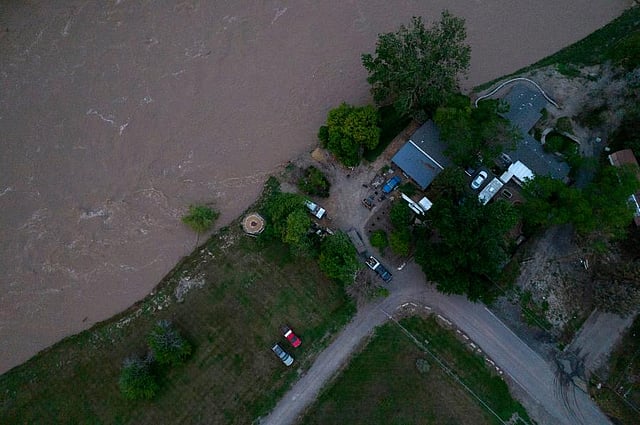 At a cabin in Gardiner, Parker Manning of Terre Haute, Indiana, got an up-close view of the roiling Yellowstone River floodwaters just outside his door. Entire trees and even a lone kayaker floated by. In the early evening, he shot video as the waters ate away at the opposite bank where a large brown house that had been home to park employees, who had evacuated, was precariously perched.