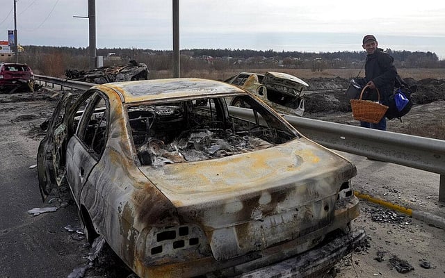 In Irpin, a suburb about 12 miles (20 kilometers) northwest of central Kyiv, bodies lay out in the open Saturday on streets and in a park.