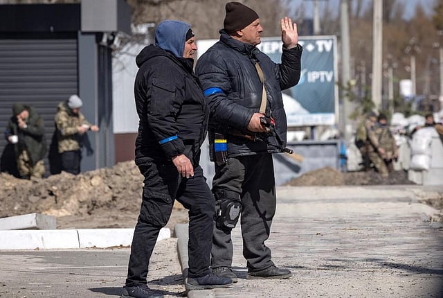 STOYANKA: Russian snipers are still targeting the deserted crossroads into the village of Stoyanka, but Andrii Ostapets hopes to bring food to his neighbours -- and to his cats, if they are still alive.