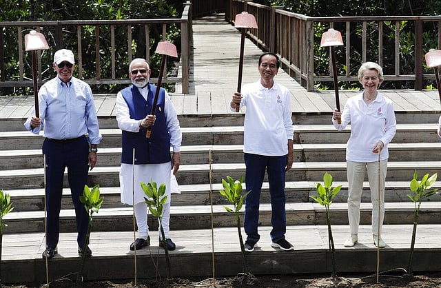 BALI: Prime Minister Narendra Modi, along with other world leaders, visited and planted mangroves in Bali's largest mangrove forest Taman Hutan Raya Ngurah Rai on the sidelines of the G-20 Summit here on Wednesday.
