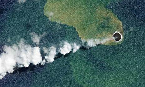 The Home Reef volcano has been erupting for the past 10 days, oozing molten lava and shooting steam and ash at least three kilometres (almost two miles) into the air.