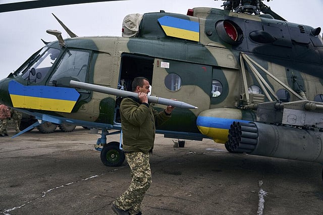 The latest U.S. package, with its mix of short-term and long-term aid, includes a wide variety of ammunition from Pentagon stocks, 23 million rounds of small arms ammunition and 200,000 grenades, as well as funding for more high-tech weapons, including counter drone rocket systems, air surveillance radar and satellite communications terminals and services.