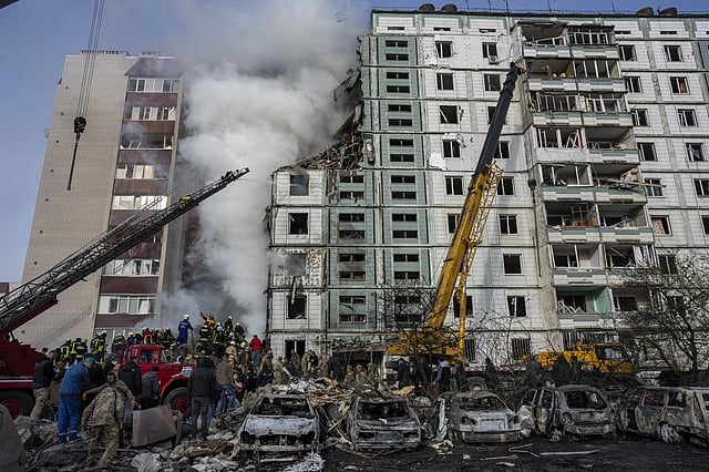 UMAN: Russia fired more than 20 cruise missiles and two drones at Ukraine early Friday, killing at least 12 people, most of them when two missiles slammed into an apartment building in the centre of the country, officials said.