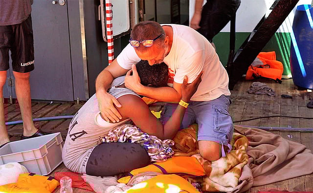 The waters in the Strait of Sicily have been extremely rough, with high winds whipping up big waves.