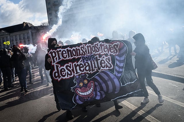 There were tensions in the western city of Nantes where protesters clashed with security forces who used tear gas pellets, an AFP photographer said.