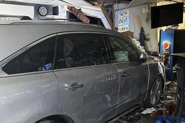 The vehicle struck the Looney Bin Bar & Grill a little after 12:40 pm on Sunday and came to a stop well inside, pinning one man inside the bathroom, restaurant owner Michelle Watson said.