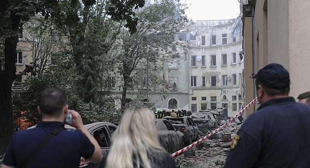 Lviv Mayor Andriy Sadovyi said the body of a woman was pulled from the rubble late Thursday, bringing the death toll to six. Kozytskyi said seven survivors were rescued from wreckage and a total of 14 people hospitalized. Sadovyi said around 60 apartments and 50 cars in the area of the strike were damaged. He announced two days of official mourning.