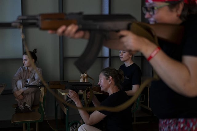 With Russia’s war on Ukraine in its 17th month, the Kyiv City Administration has opened up training for civilians who want to learn survival skills, including how to shoot, provide first aid and recognize land mines. These and other skills could be used in a hostile environment provoked by missile strikes and other man-made disasters.