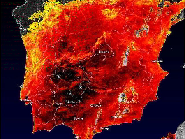 According to Copernicus, the earth observation component of the European Union's space programme, the extreme heat is forecast to last across the Mediterranean for around two weeks. They also pointed out that the land surface temperature is that of the soil and should not be confused with the air temperature.
