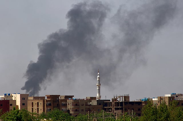 Through the morning, columns of black smoke were seen rising near army headquarters in the centre of Khartoum as well as in the city's south.