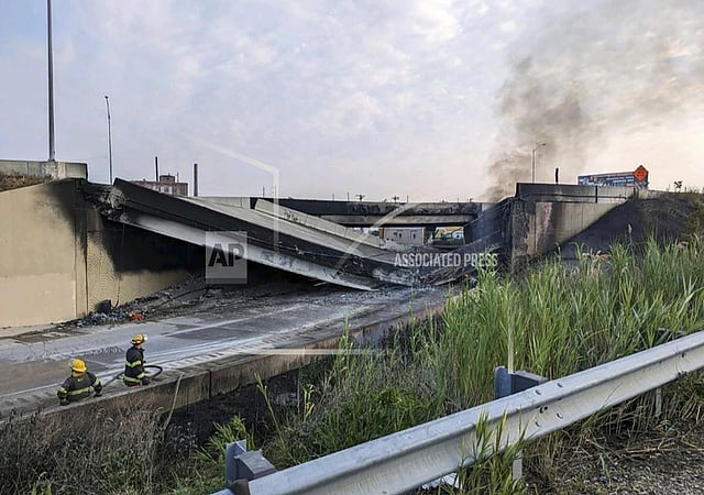 PHILADELPHIA: An elevated section of Interstate 95 collapsed early Sunday in Philadelphia after a tanker truck carrying flammable cargo caught fire, closing a heavily travelled segment of the East Coast's main north-south highway indefinitely, authorities said.